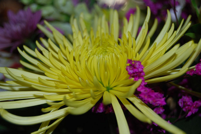 I, like so many other people, have a thing for any flower/tree/branch/leaves that are printed on towels, paper, you name it! So today I've been working on some cool flower sketches. One of my friends ( Hi G!) is really great about always having flowers around her house. It's a habit that I would like to pick up since it's such a happy surprise when you walk into a room! One of the flowers she usually has is the spider mum. You can usually find them in a great chartreuse-ey (yes, I made up that word) color but they also come in a variety of other colors. They look cool...but they are a b&@tch to sketch! So I'm taking a break to post pretty pictures of them just for you.